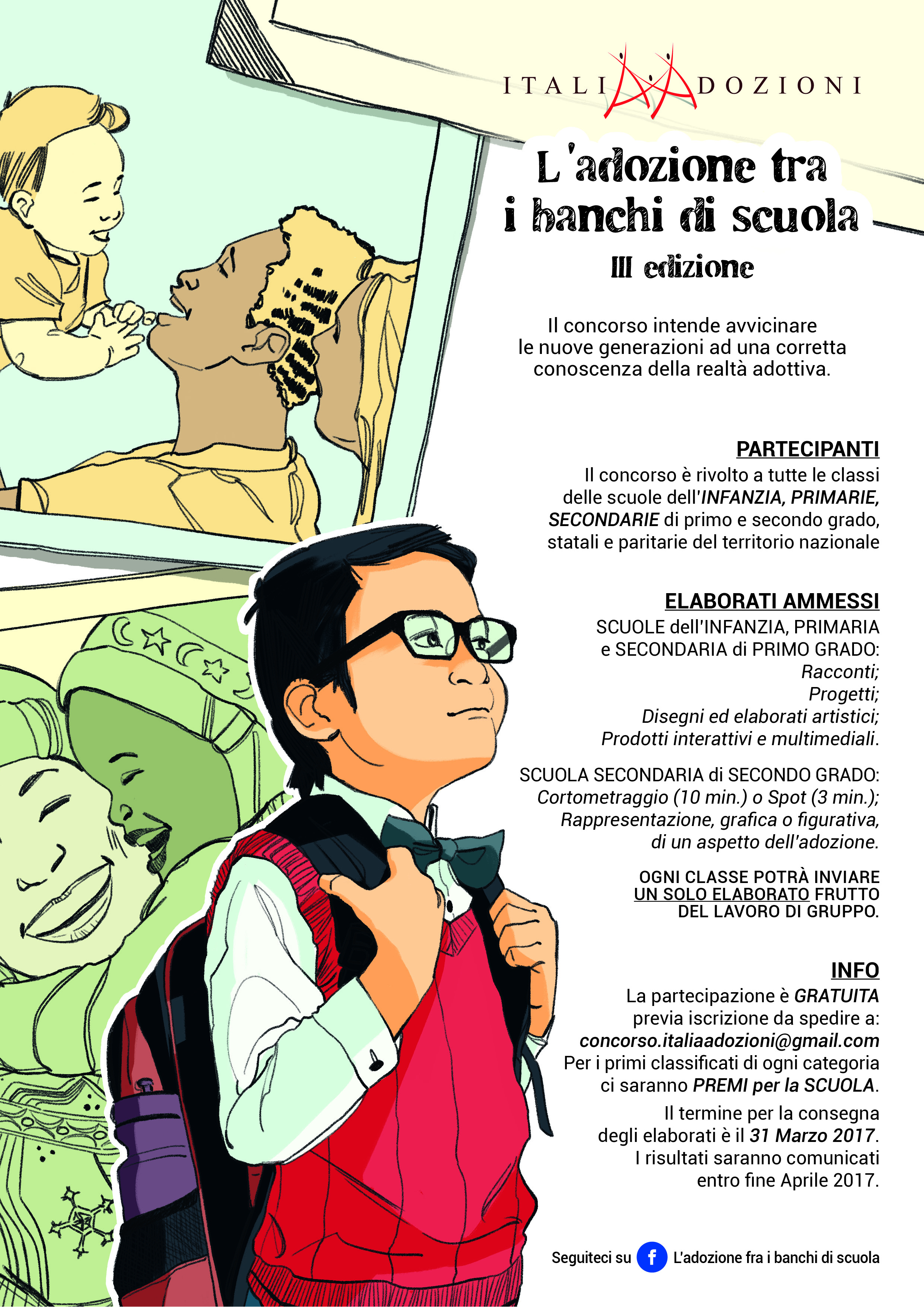 concorso nazionale "L'adozione fra i banchi di scuola" Inserito da giancarlo.ceradini il giorno Mer, 15/02/2017 - 10:34 Tipo di pubblicazione: ComunicazioneAnno scolastico: 2016-2017Data di emissione: Mercoledì, 15 Febbraio, 2017 - 10:30Argomento: Attività e ProgettiDestinatari: AlunniATADocentiGenitoriTitolario: I/2FPubblica o Privata: PubblicaAllegati pubblici: l'adozione fra i banchi di scuola - BANDO terza edizione.pdf locandina concorso terza edizione.jpg Leggi tutto su concorso nazionale "L'adozione fra i banchi di scuola"Segnala un problemaVersione stampabile